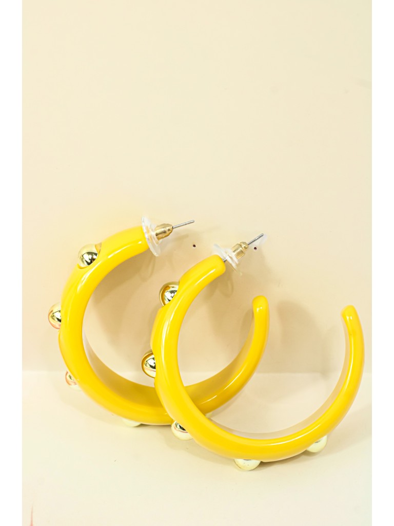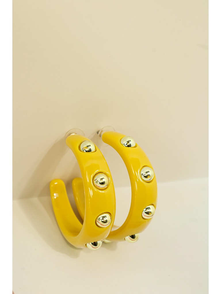 Brinco de Argola aberta em Resina com detalhes de metal dourado, acabamento em metal.