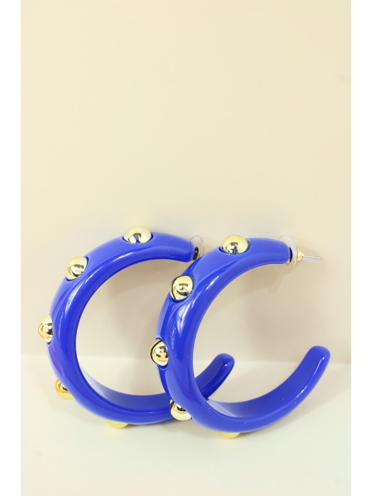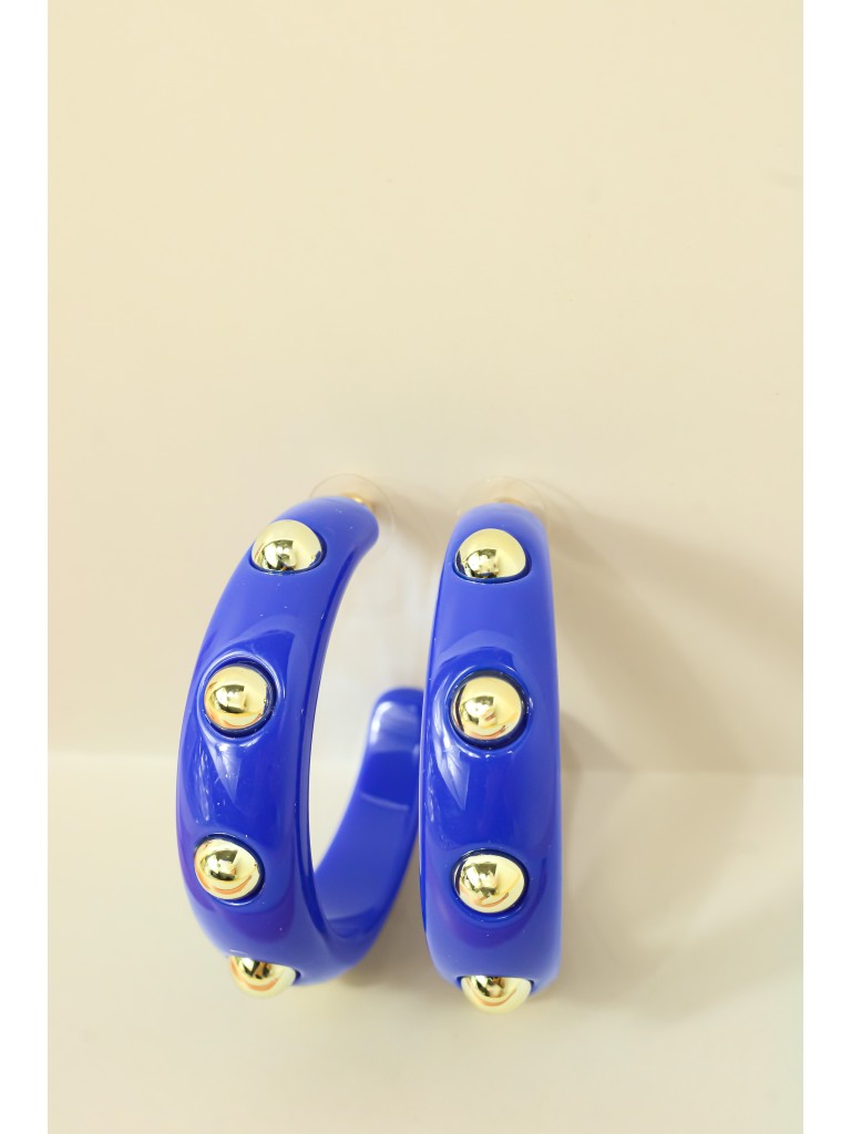 Brinco de Argola aberta em Resina com detalhes de metal dourado, acabamento em metal.
