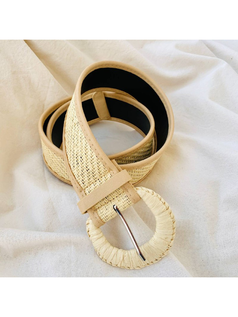Cinto de palha e couro sintético;