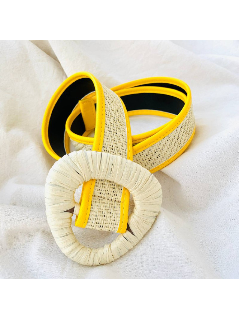 Cinto de palha e couro sintético;