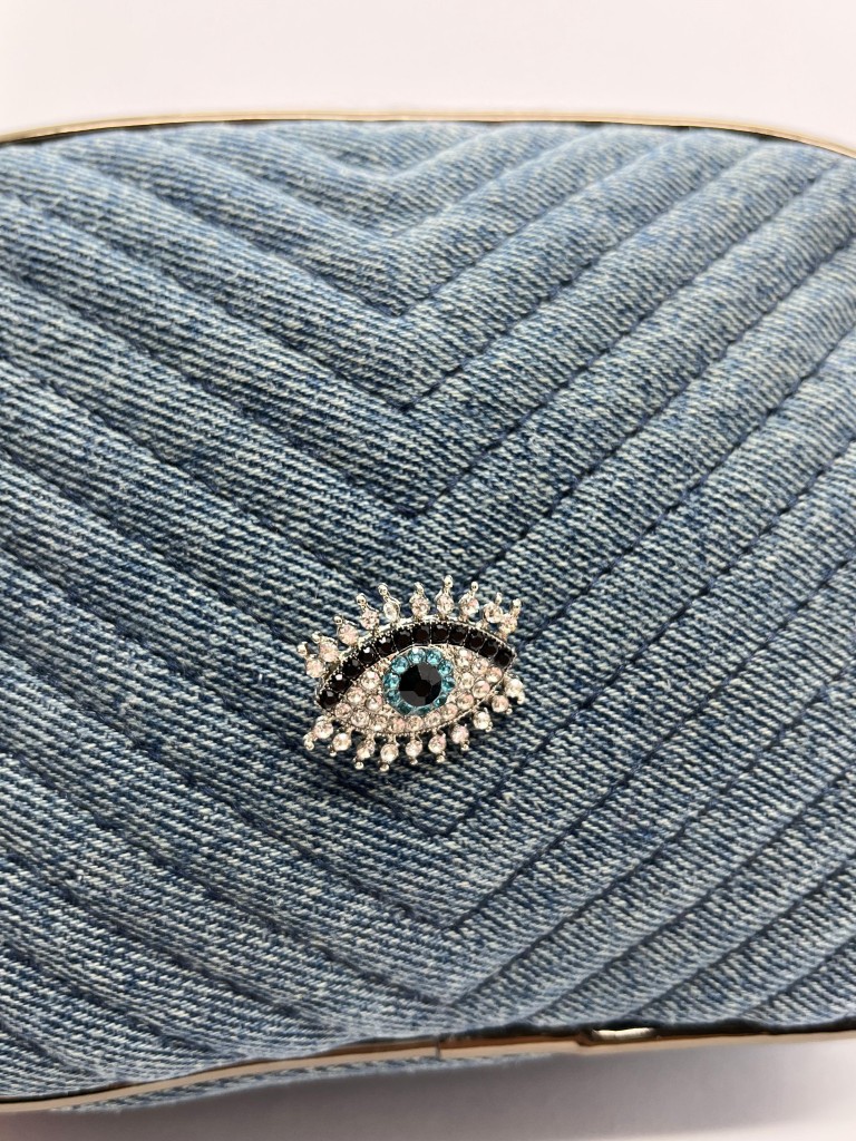 Broche em formato de olho, com design moderno e cheio de personalidade. Cravejado com cristais brilhantes em tons de branco, preto e azul, o acessório representa proteção e estilo em uma só peça. Ideal para compor looks criativos ou místicos, ele traz um toque ousado e elegante para jaquetas, camisas, bolsas ou lenços. Com aproximadamente 3 cm, é confeccionado em metal de alta qualidade com acabamento refinado.