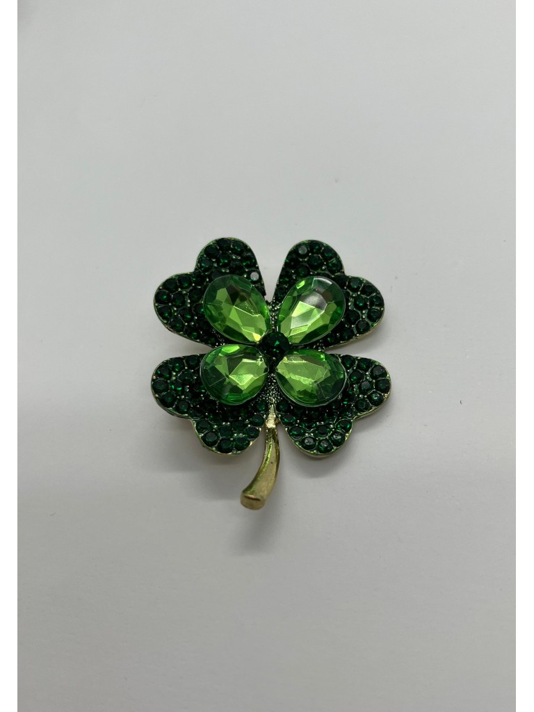 Broche Trevo de Quatro Folhas com Pedrarias Verdes – Símbolo de Sorte e Elegância